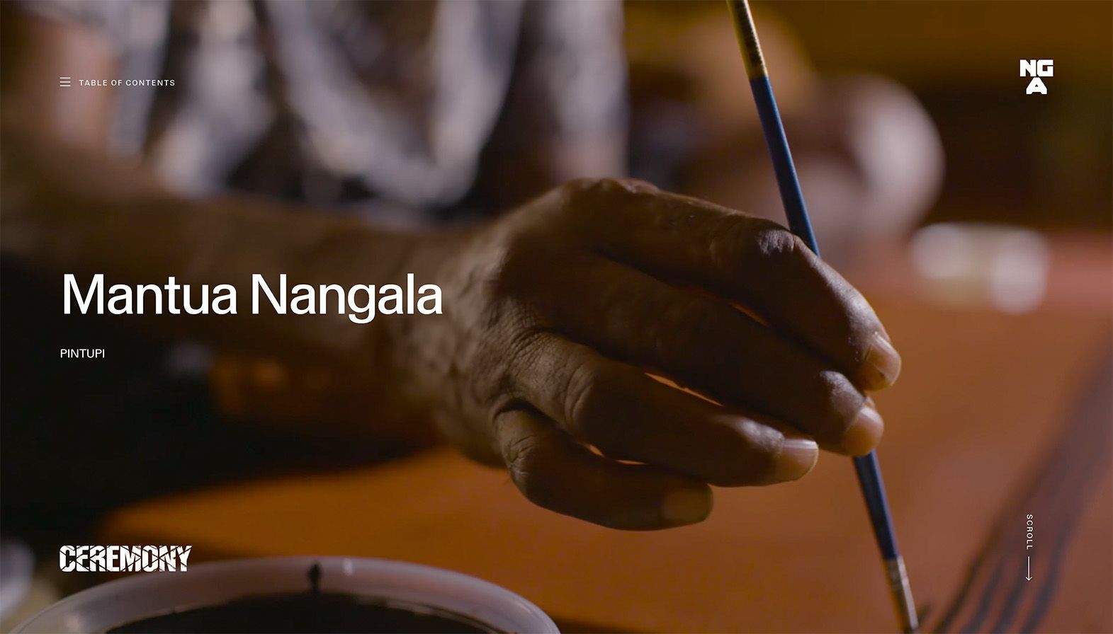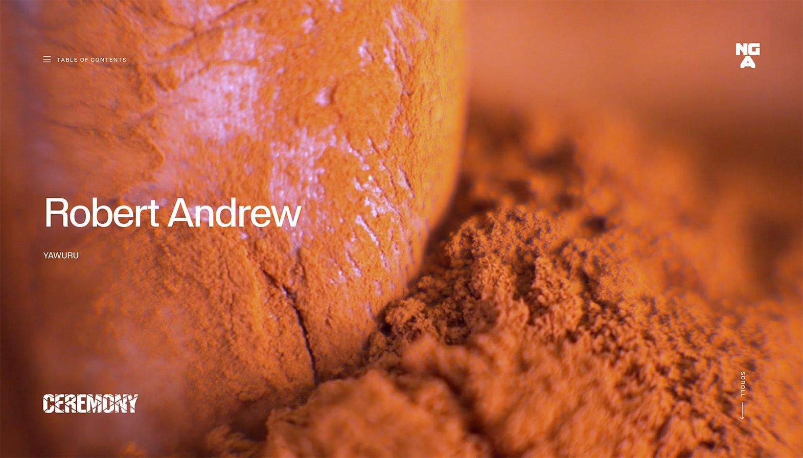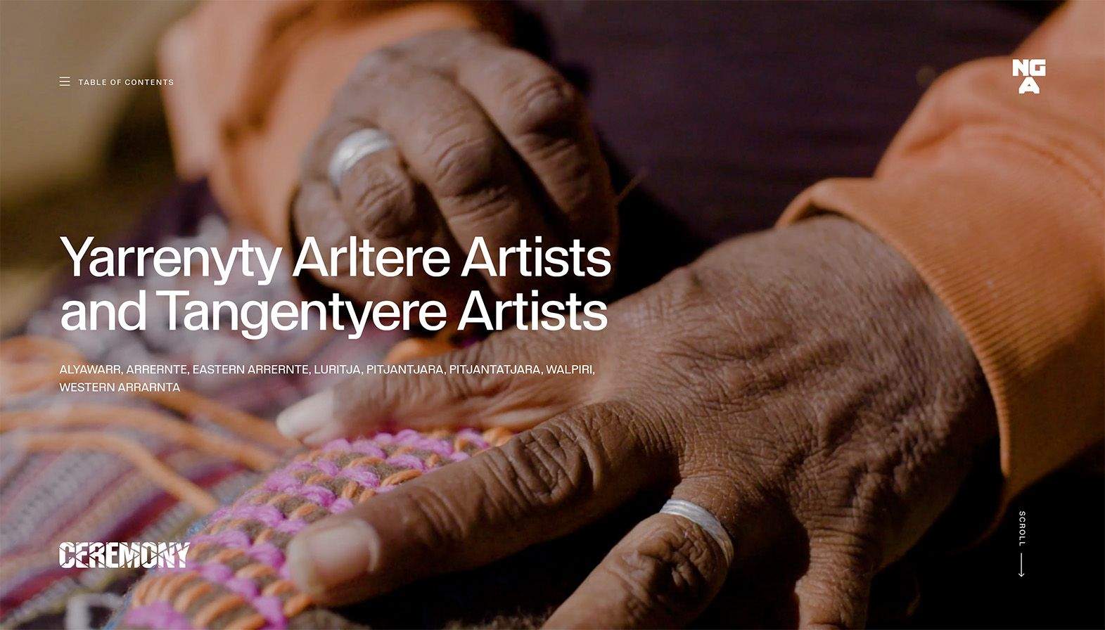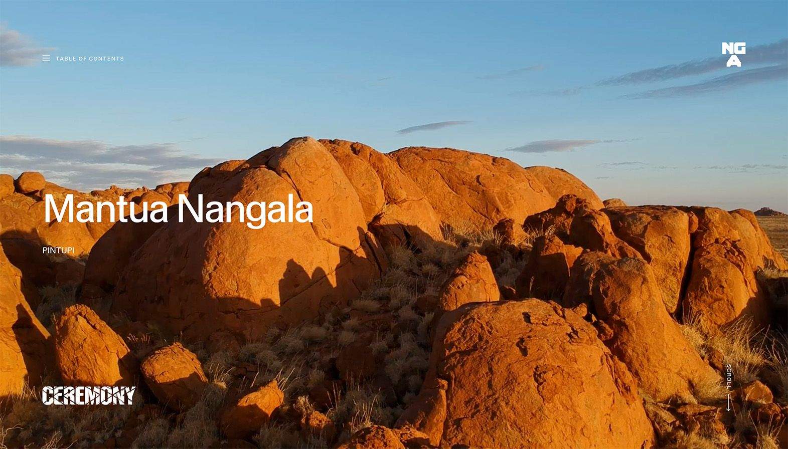For its Ceremony exhibition, the NGA commissioned us to reframe the publication as a living and breathing reflection of art, presented through the story of the artist. A digital publication, if you will, but something more than a reinterpretation of a venerated media format. It wanted to give the artist another platform to show their intent, to unravel how they see ceremonies in their own lives and communities. A space to speak in their own voice, on their own terms and in their own language.