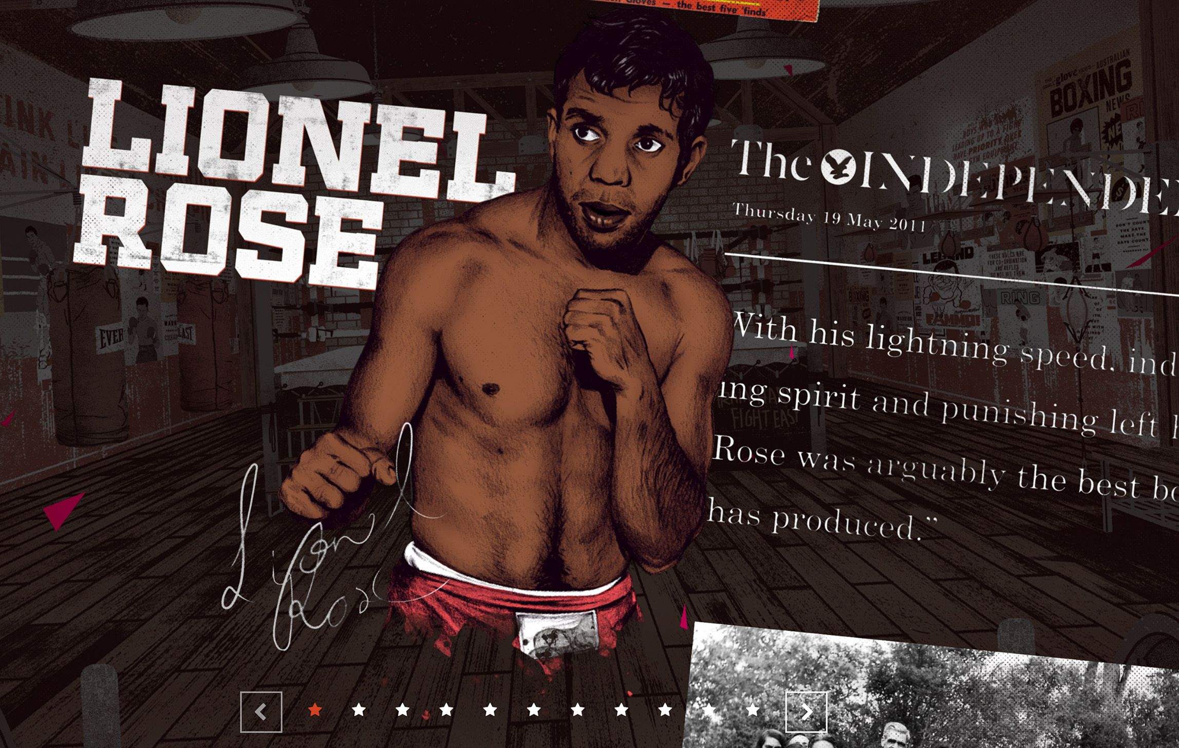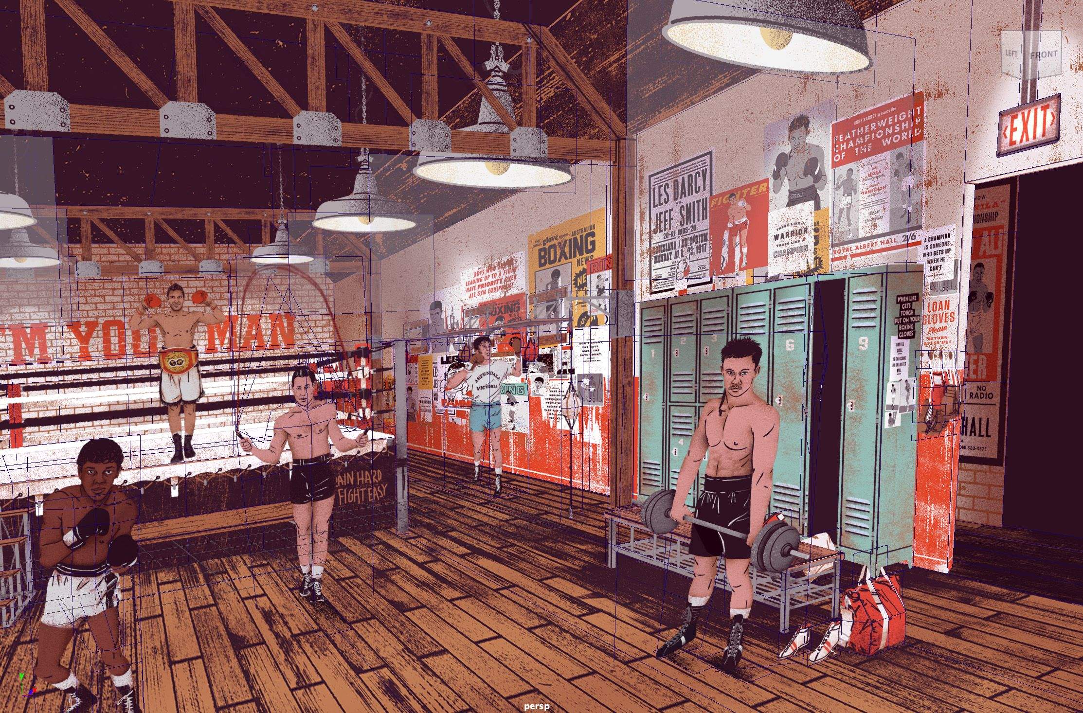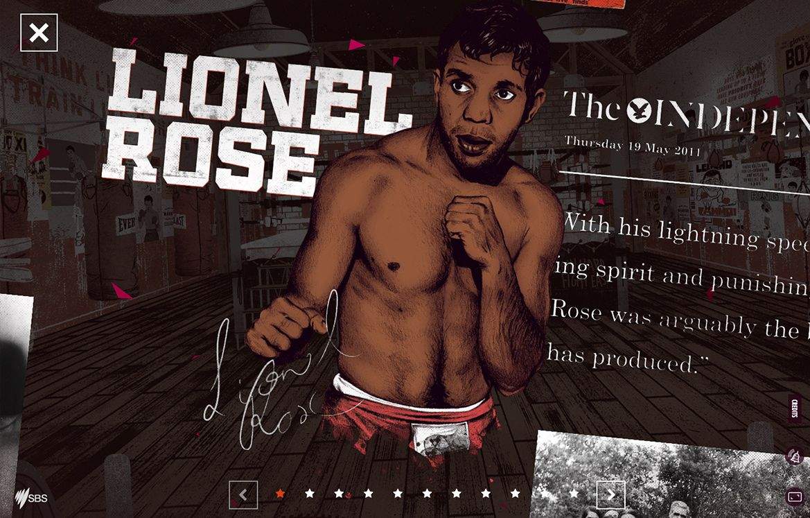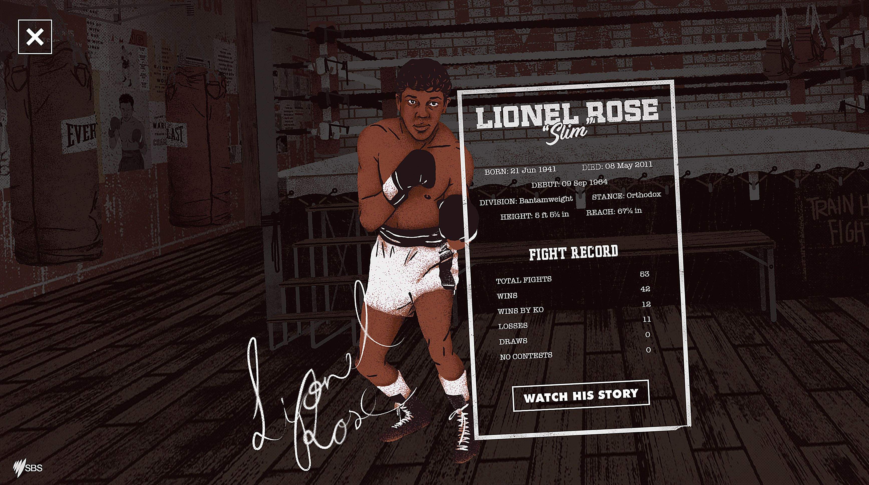 Woven through Dib’s story, we explore the diverse history of some of Australia’s best-known boxing legends. After each fight, audiences return to The Gym. A hub for the stories of Australia’s boxing legends. The team worked with celebrated New York based illustrator Timba Smits to craft beautifully intricate artwork and portraits of luminary Australian boxers that launch into six side-narratives, spanning Lionel Rose to Kostya Tszu.