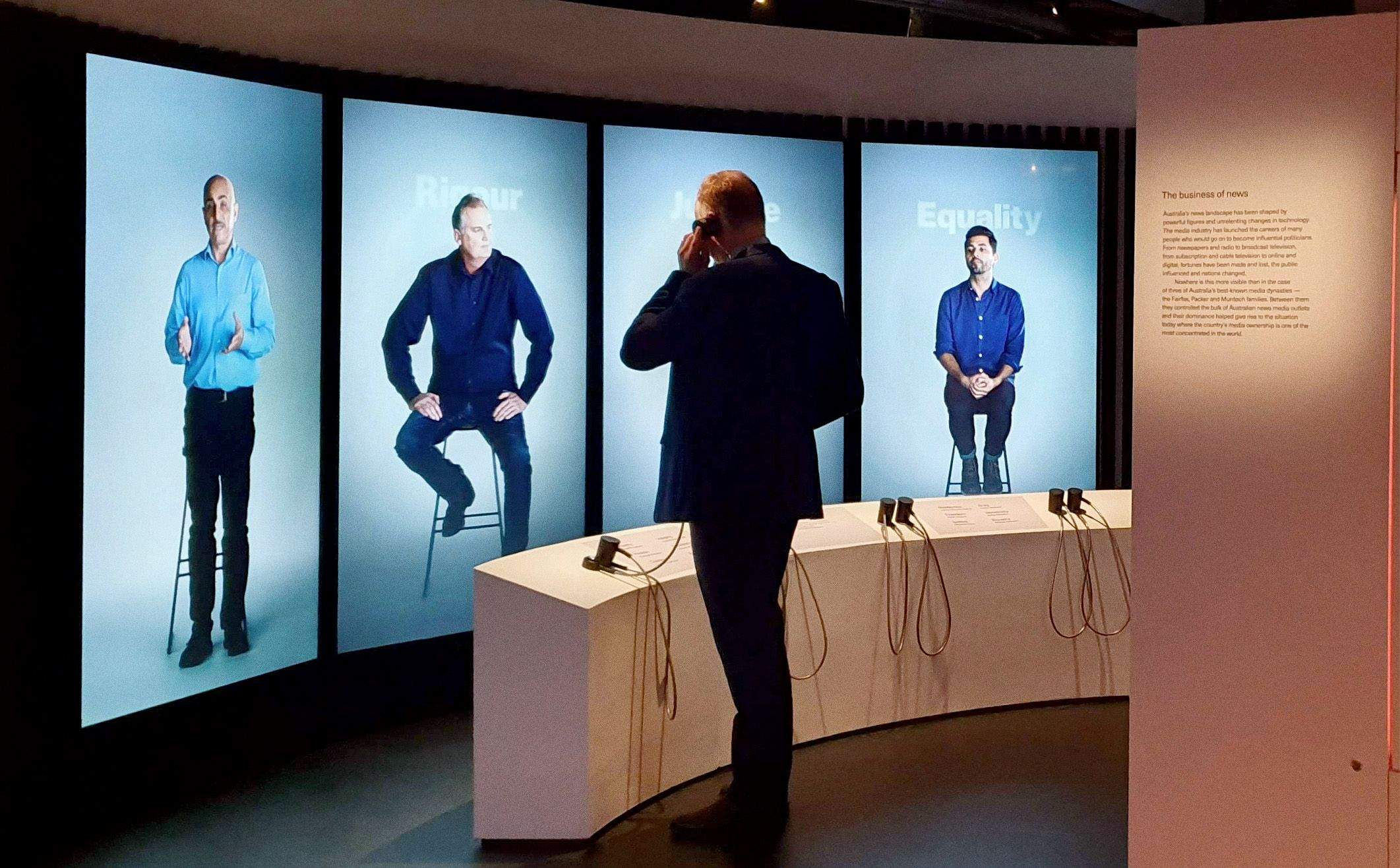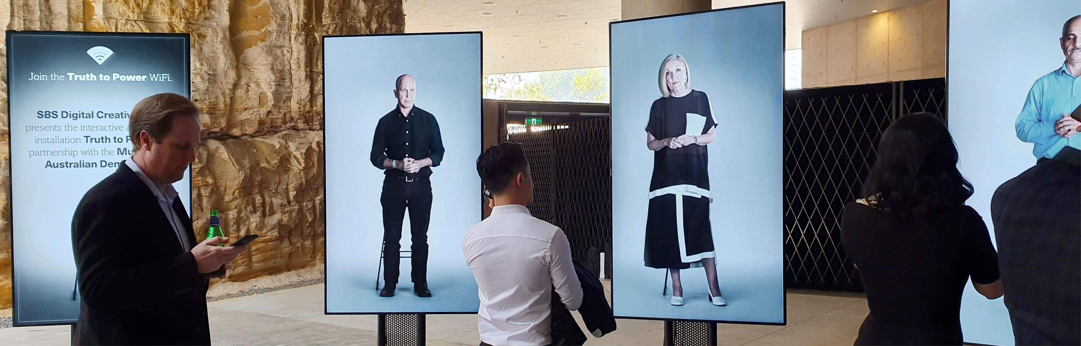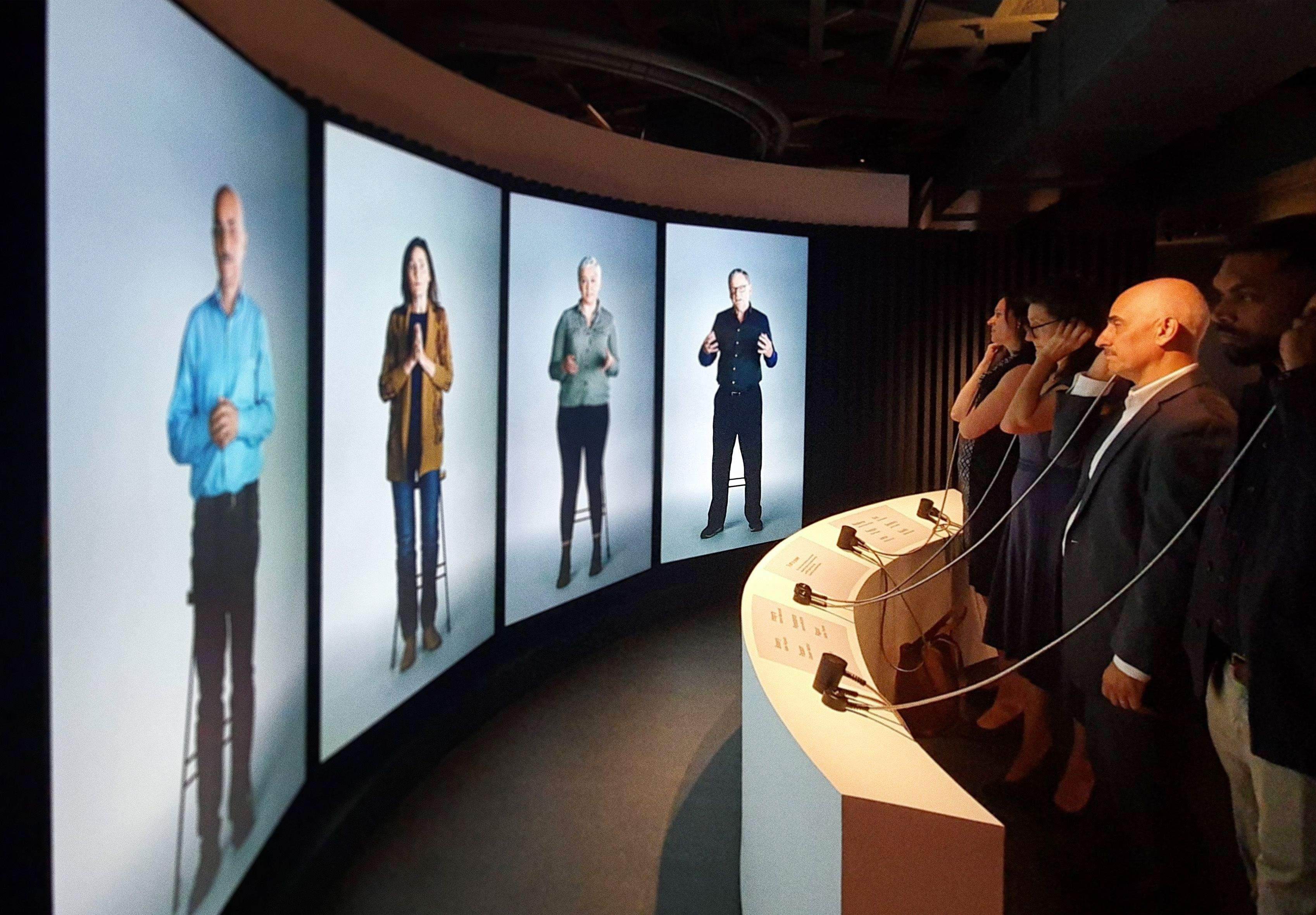 A soft portraiture treatment to the image, and at lifesize 4K, the subjects appear real when they stand and look you in the eye. To achieve this, our UX and development team built a robust technology solution underpinned by our Storyteller platform. It powered a total of 16K display technology, both in an interactive mode allowing eight concurrent users simultaneously, and a ’broadcast’ mode for school children that enables educators to dial in a linear experience for large groups.