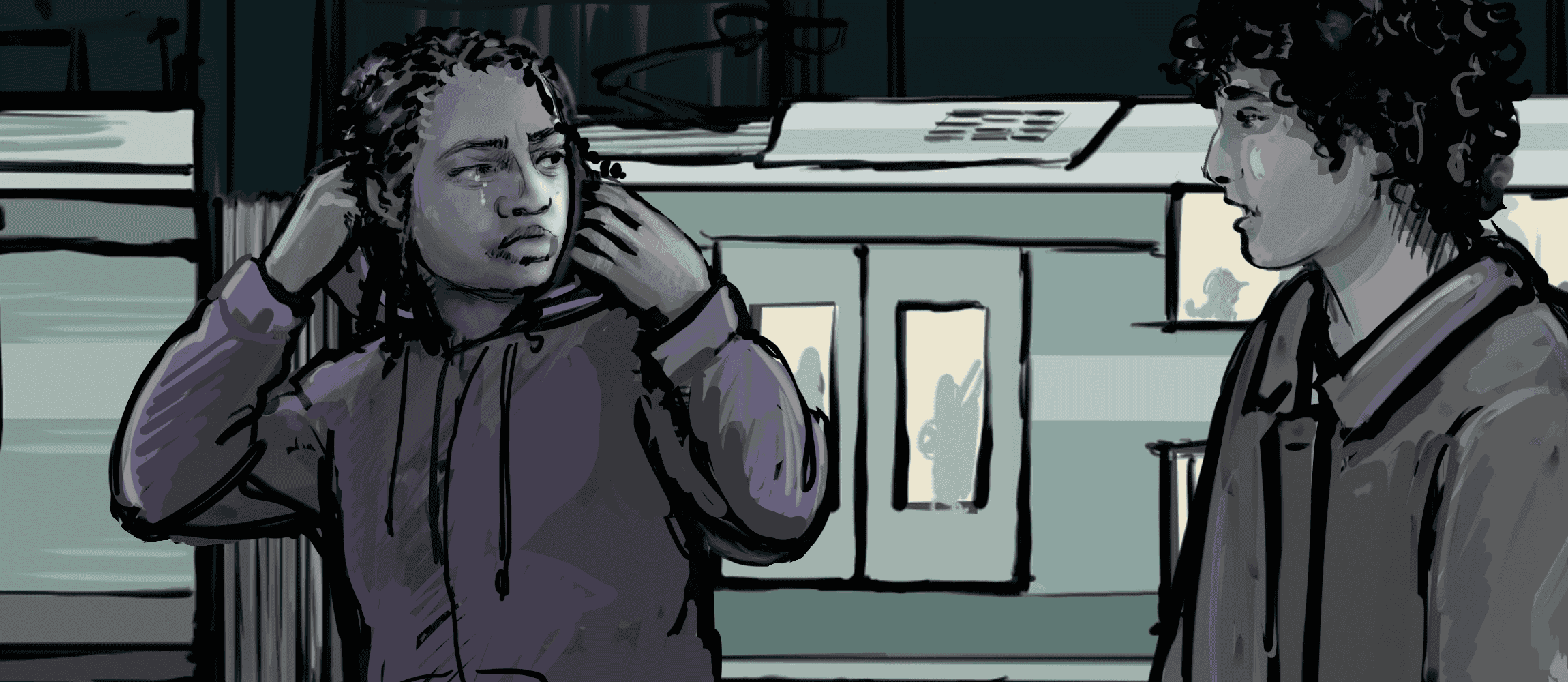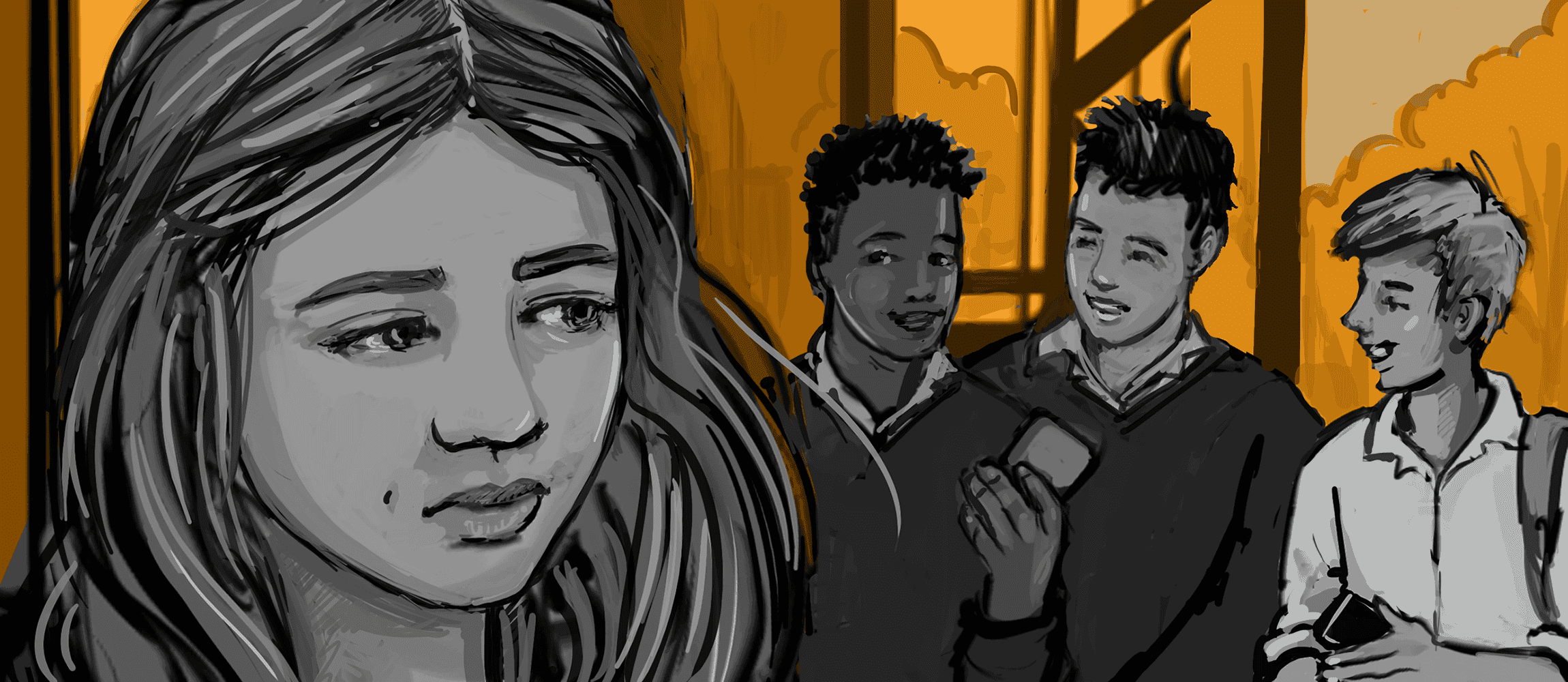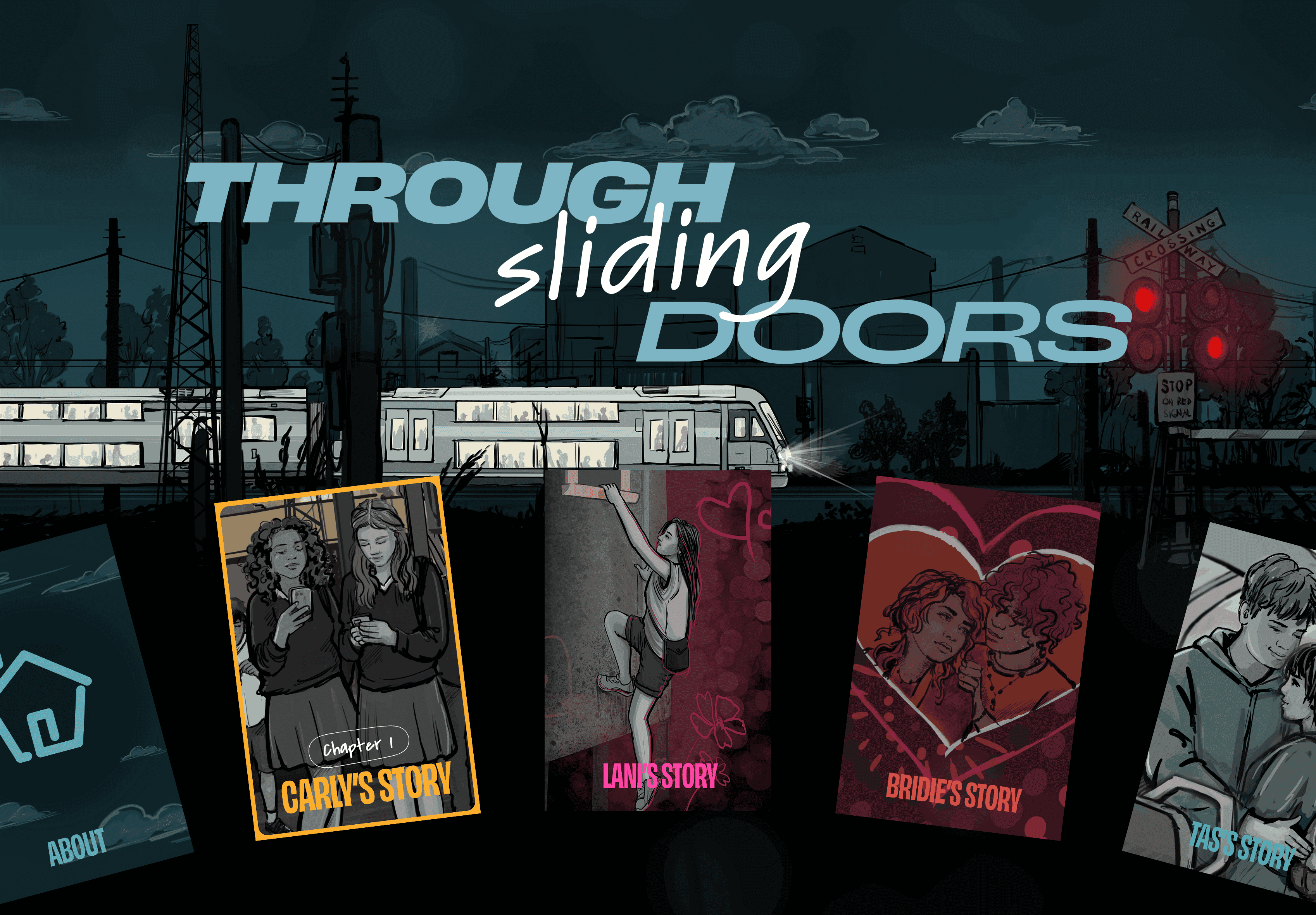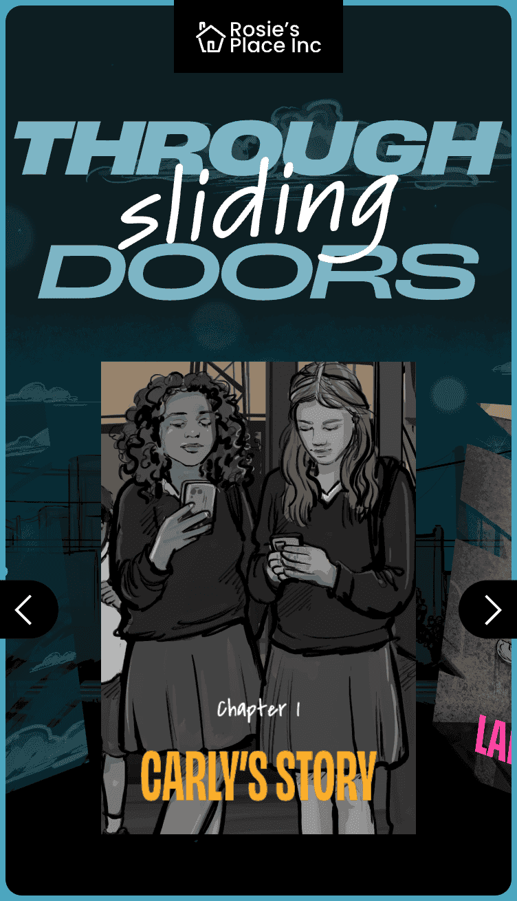 Through Sliding Doors is an interactive comic exploring the experiences of young people navigating exploitation, peer pressure, online harm, and the search for safety.