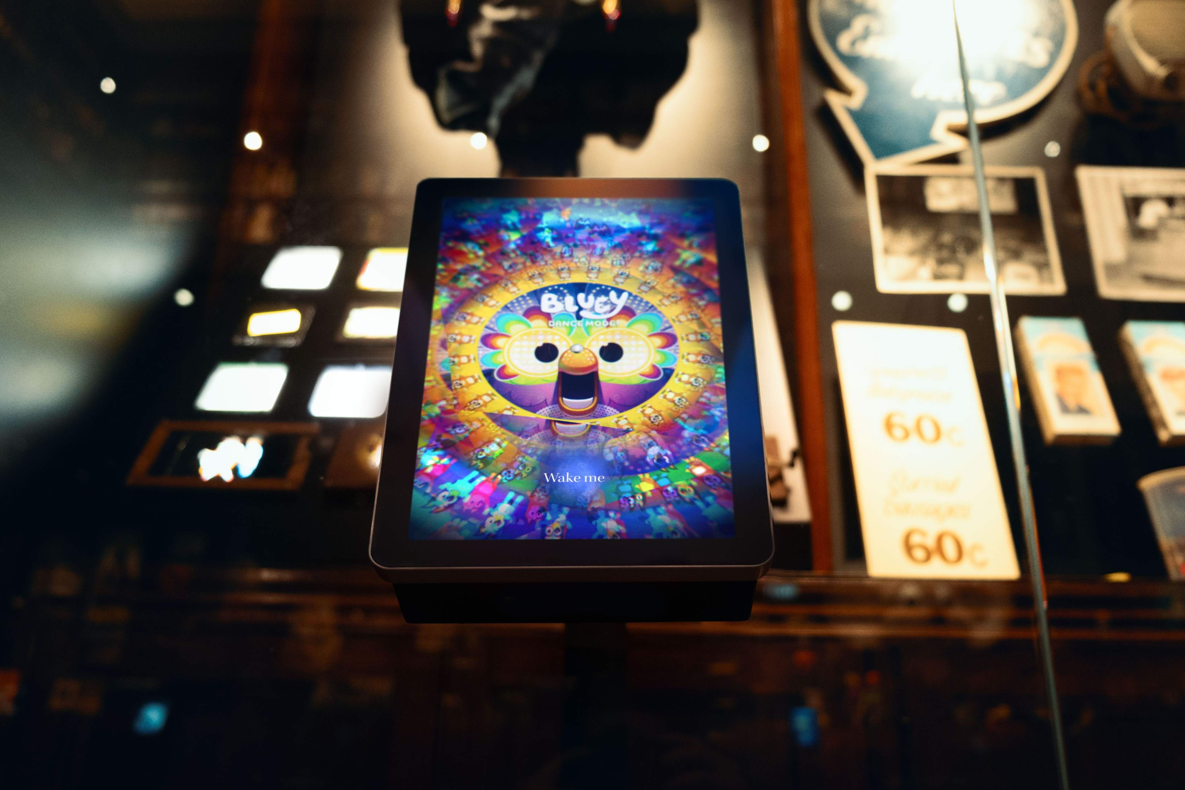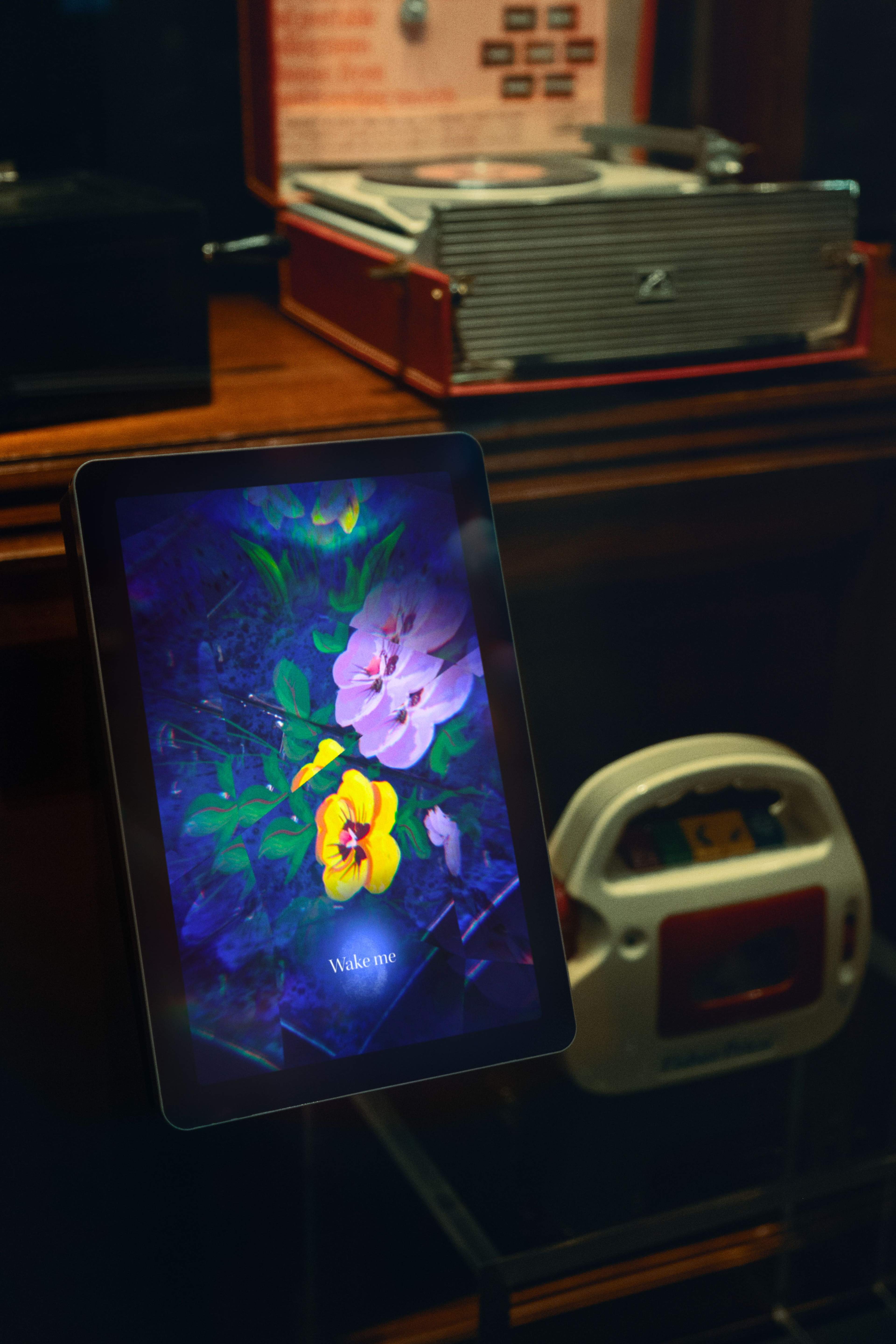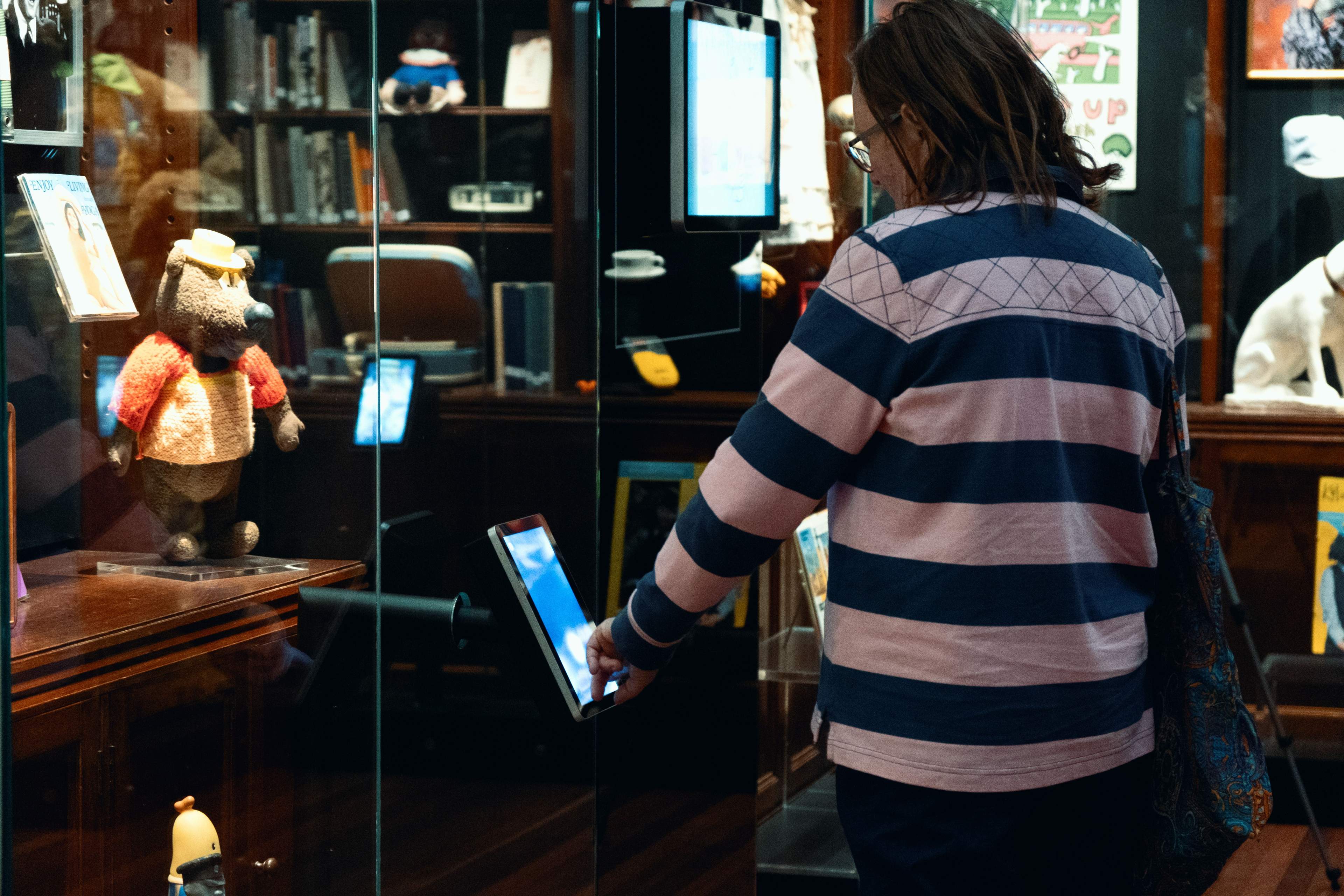 Within the meticulously restored art deco interior, and amid a dense array of objects, the screens consolidate curatorial interpretation in place of individual object labels. They allow visitors to seek context for each artefact while, through their own design, creating a dreamy atmosphere that complements the exhibition.